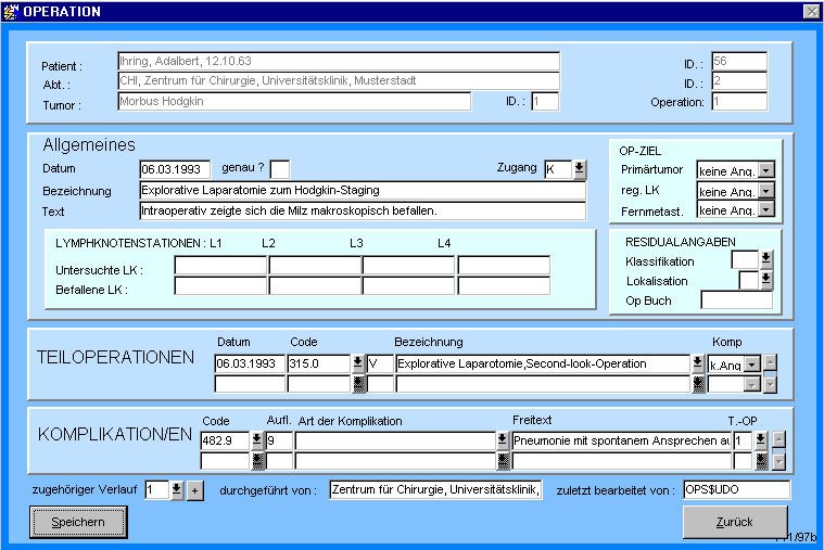 Eine Verlaufsdokumentation erfolgt auch nach weiteren wichtigen Patientenkontakten wie Nachsorgeuntersuchungen sowie pontan Ereignissen wie Rezidiven etc.
