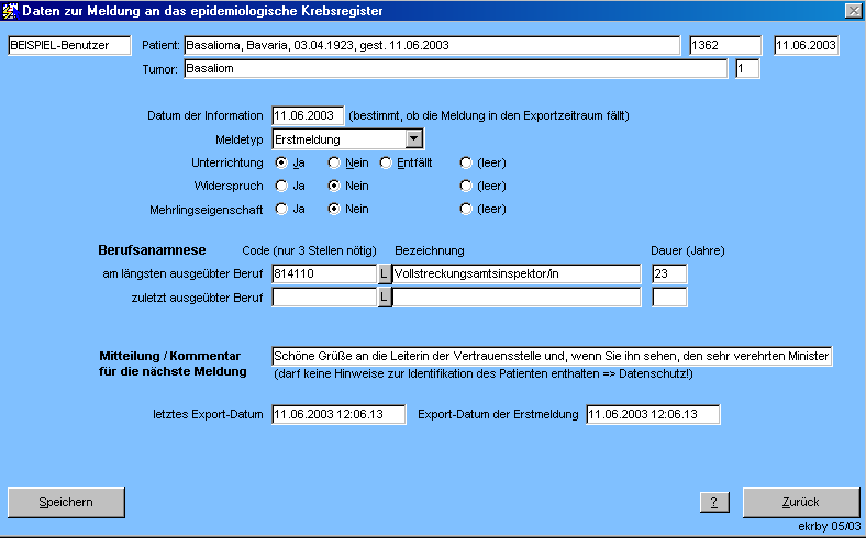 Die Datenmasken dienen der Erfassung der spezifischen Daten für das jeweilige epidemiologische Register für den einzelnen Tumor.
