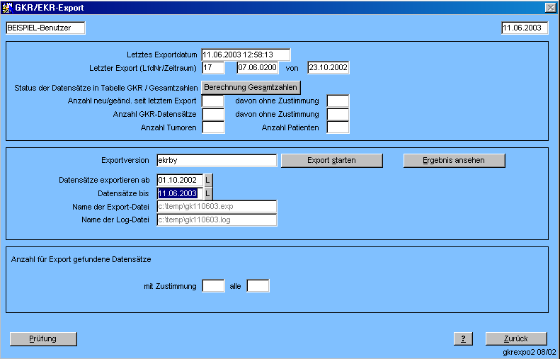 | EKR_NUR_ERFASSUNG_ABGESCHLOSSEN | Ja Nein (exportiert nur Datensätze mit abgeschlossener Erfassung) |