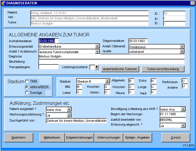 Dokumentation einer Tumorerkrankung stehen die Diagnosedaten,