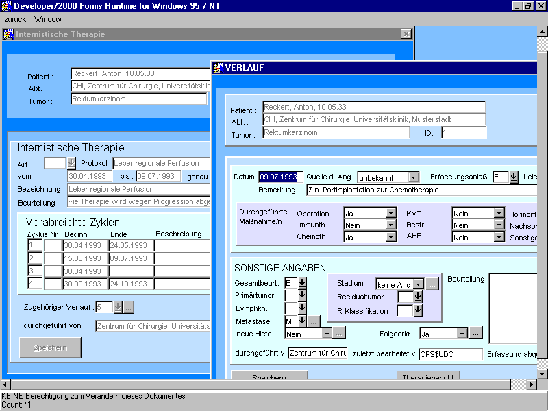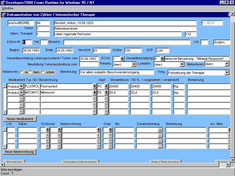 werden können. Detaillierte Therapieerfassungsmasken existieren für