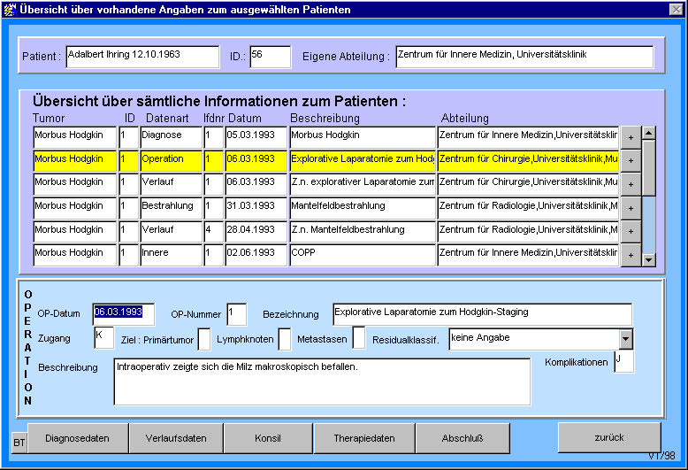 Eine Verlaufsdokumentation erfolgt auch nach weiteren wichtigen Patientenkontakten wie Nachsorgeuntersuchungen sowie pontan Ereignissen wie Rezidiven etc.
